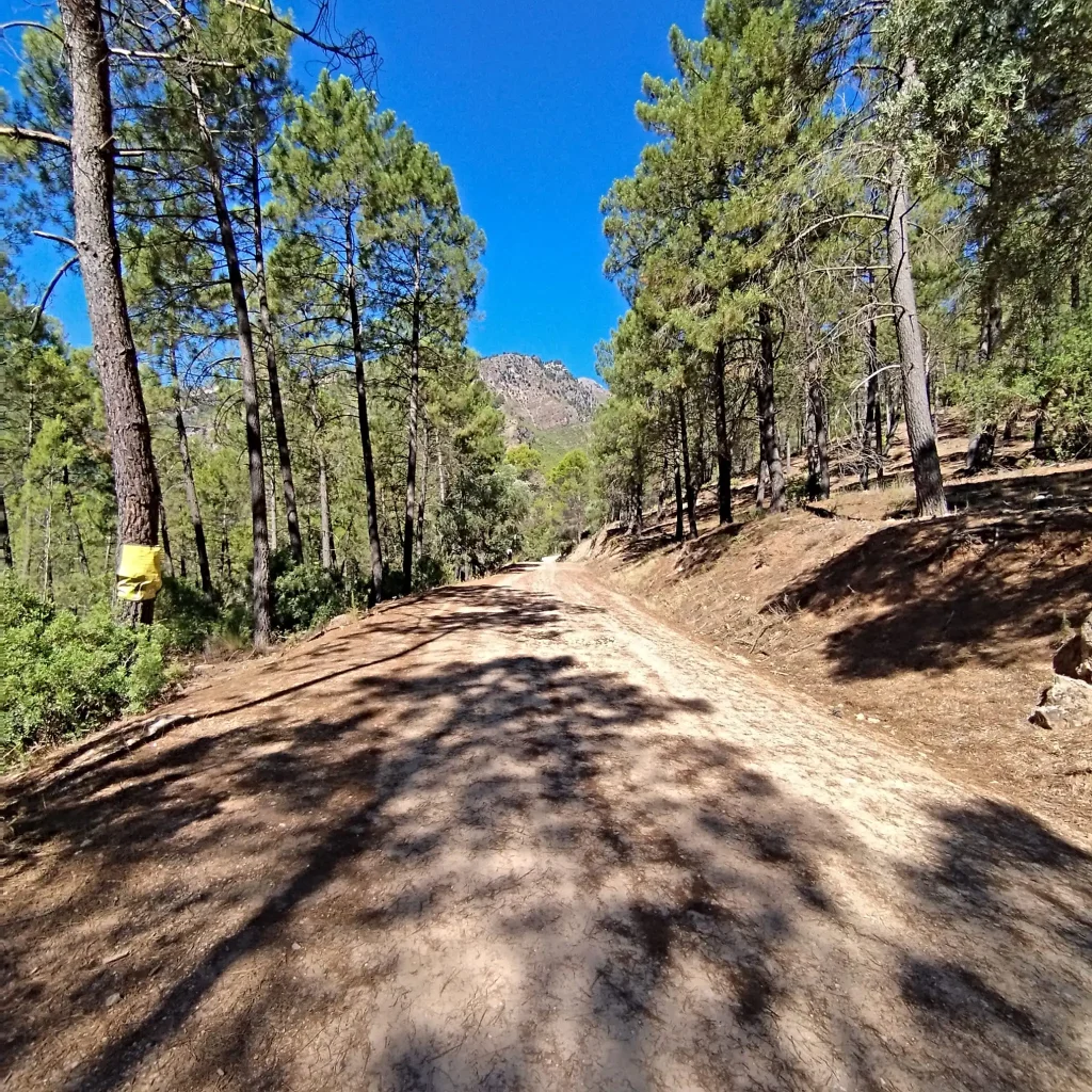 Decidimos continuar andando hasta el primer mirador, cuyo nombre no recordamos exactamente, pero desde donde las vistas eran espectaculares: bosques de pinos y encinas que se extendían hasta donde alcanzaba la vista.